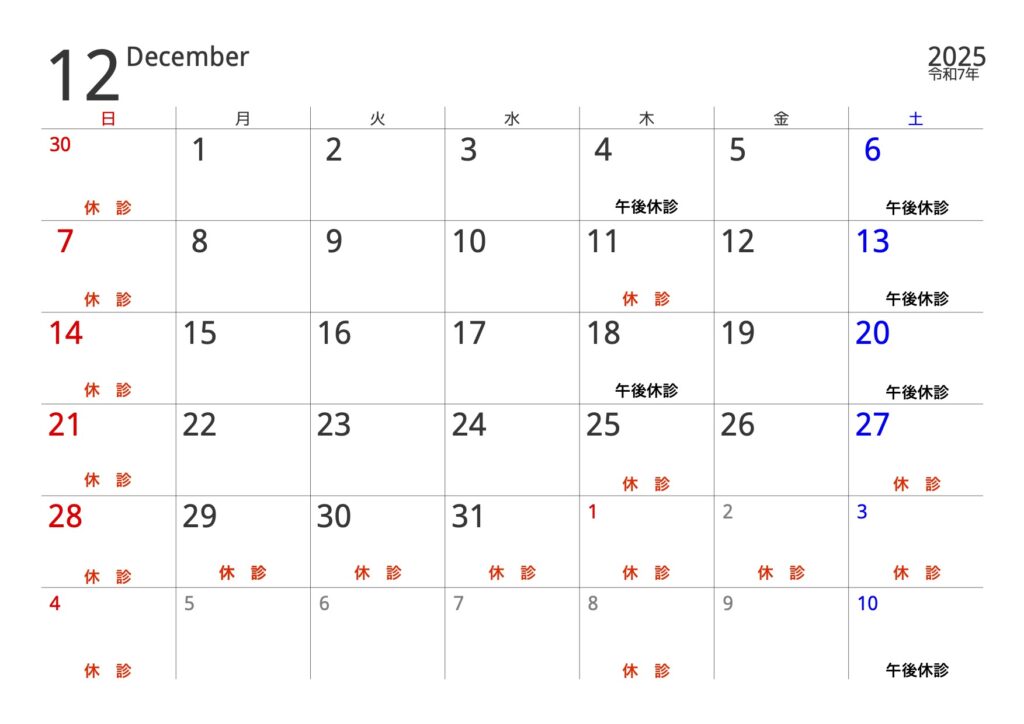 12月休診日、年末年始休診日のお知らせ